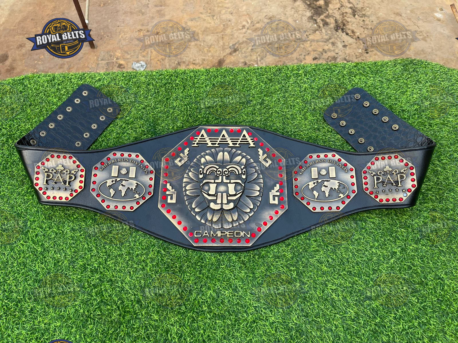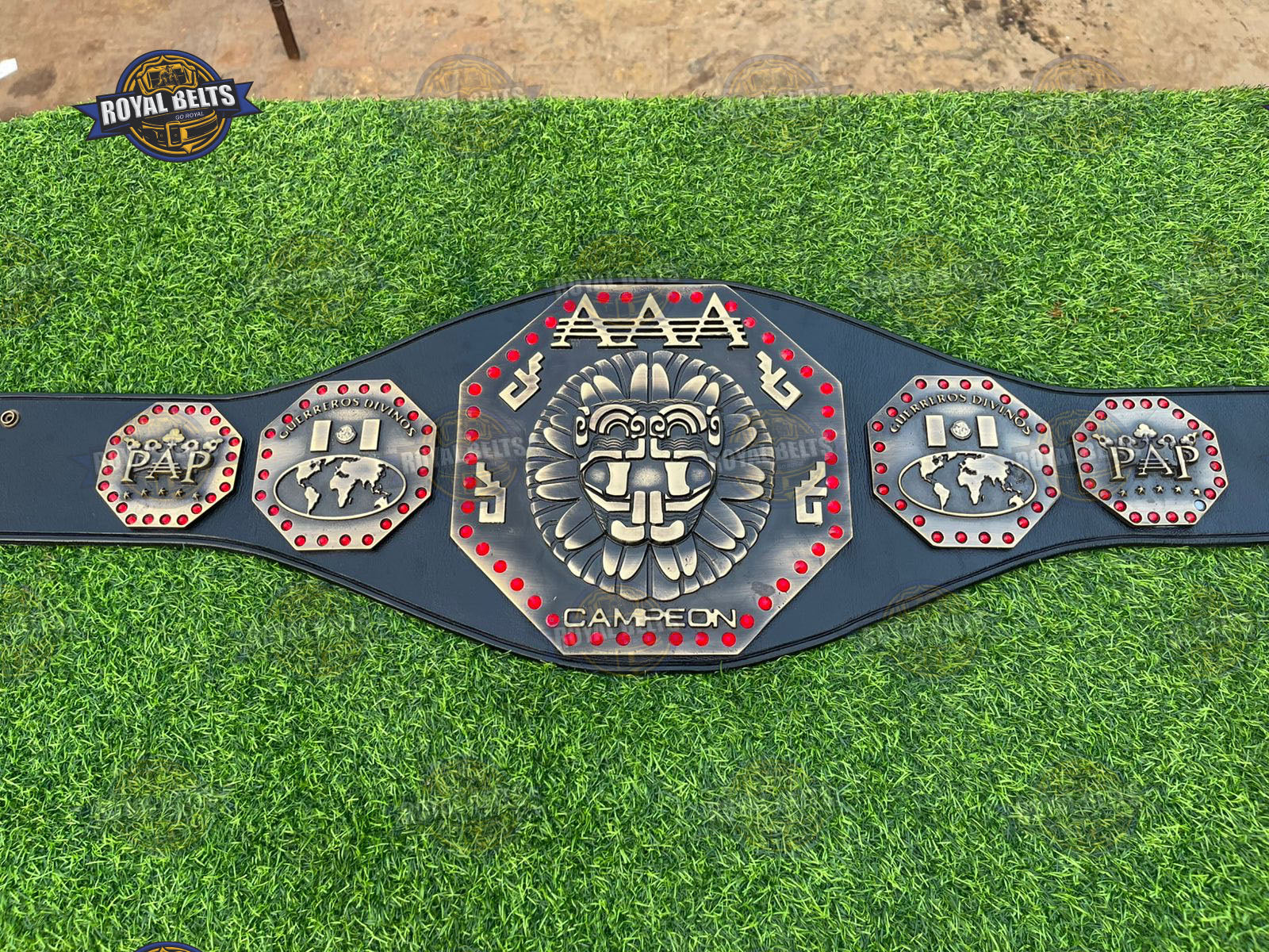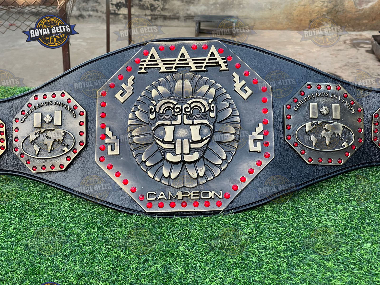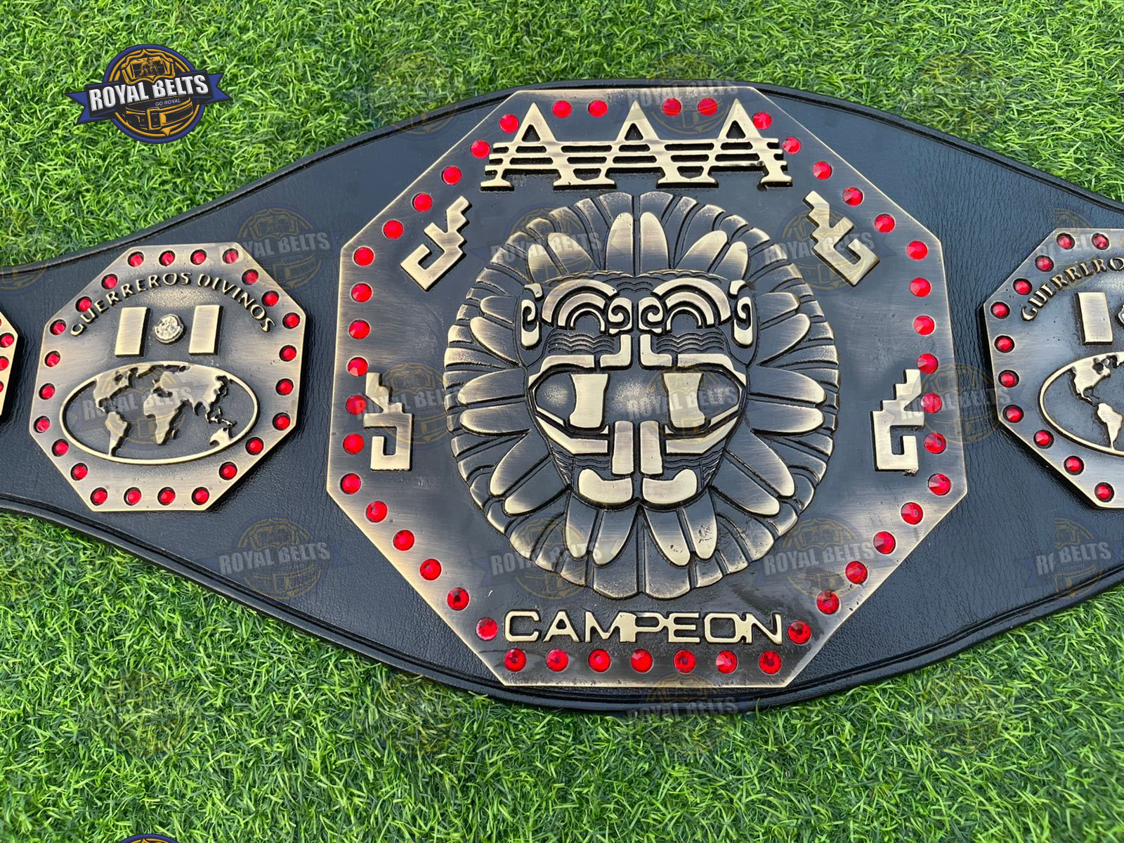 AAA Mega Championship Title Belt. Moreover, this iconic Lucha Libre AAA Championship Belt features bold design and premium detail. As a result, fans proudly display this AAA Mega Championship Belt at events or in collections. In addition, the durable build and sharp plates highlight true AAA wrestling championship belt quality. Therefore, this AAA Mega Title Wrestling Belt makes a perfect gift for wrestling fans and collectors.