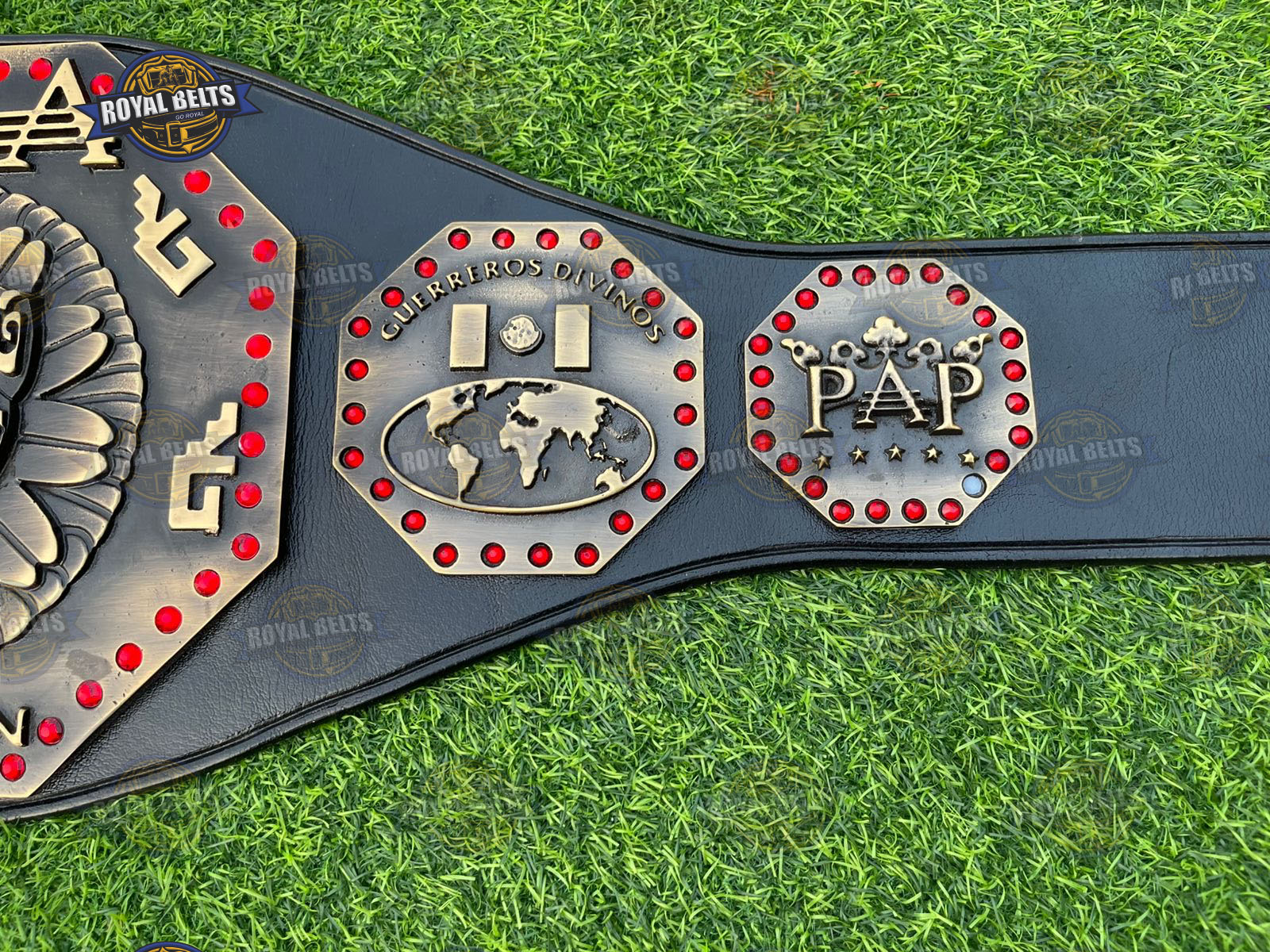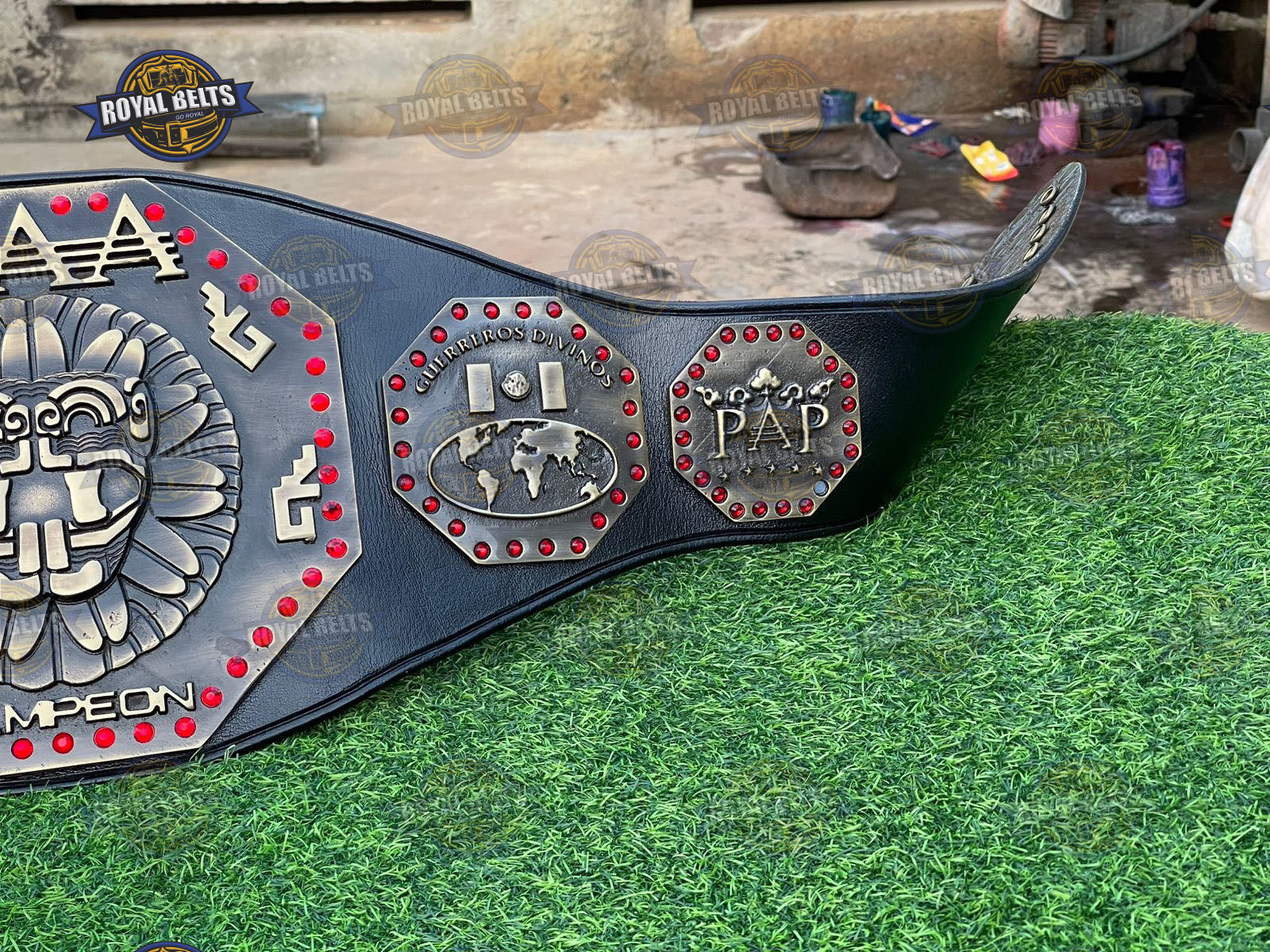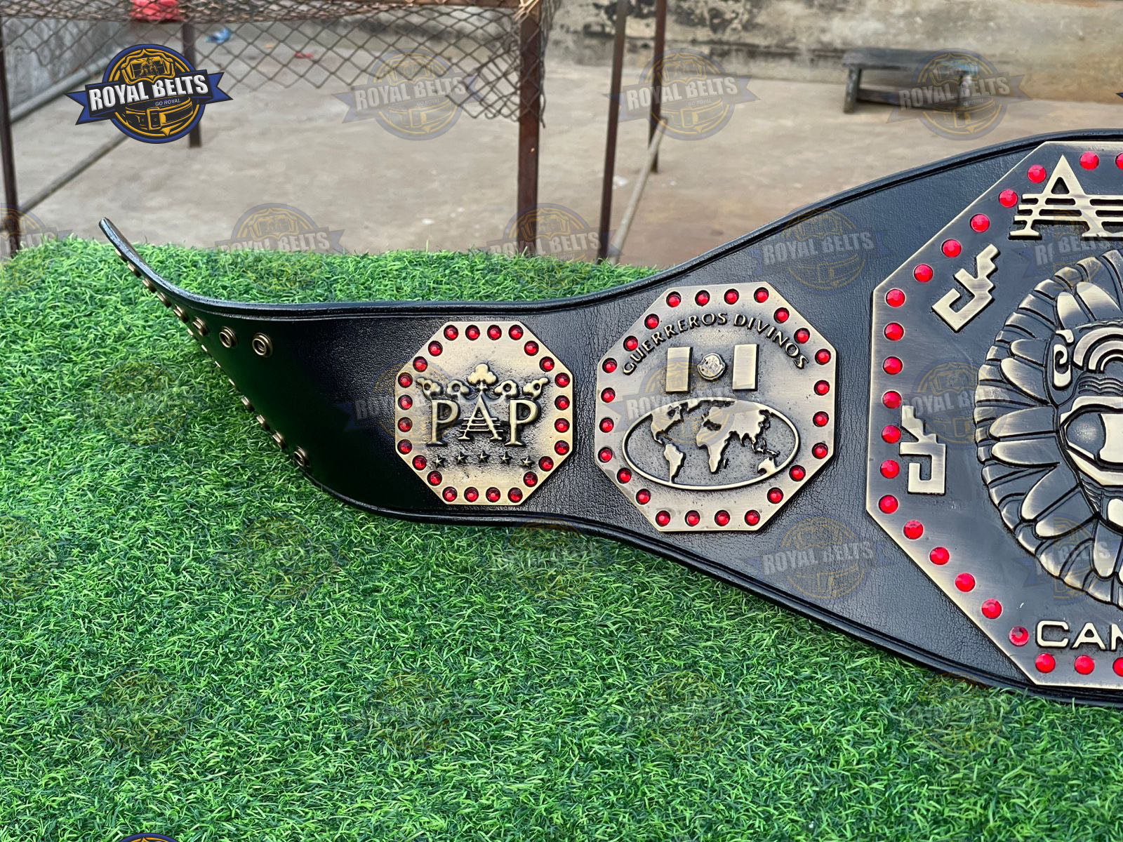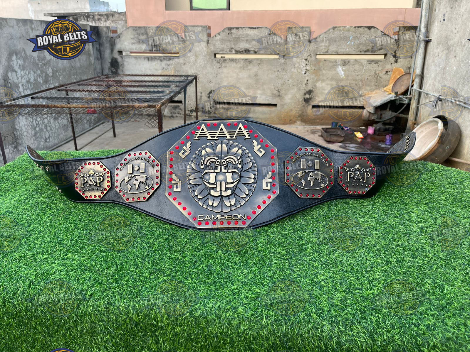 AAA Mega Championship Title Belt. Moreover, this iconic Lucha Libre AAA Championship Belt features bold design and premium detail. As a result, fans proudly display this AAA Mega Championship Belt at events or in collections. In addition, the durable build and sharp plates highlight true AAA wrestling championship belt quality. Therefore, this AAA Mega Title Wrestling Belt makes a perfect gift for wrestling fans and collectors.