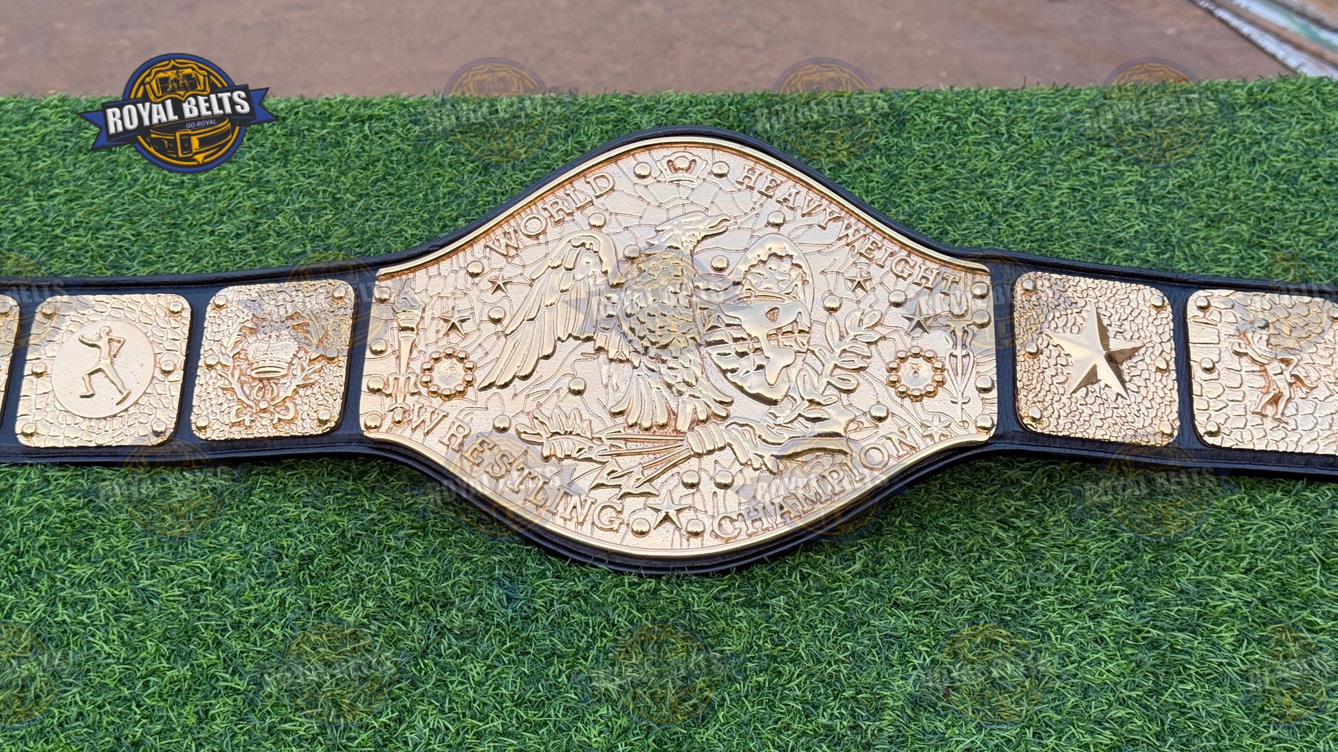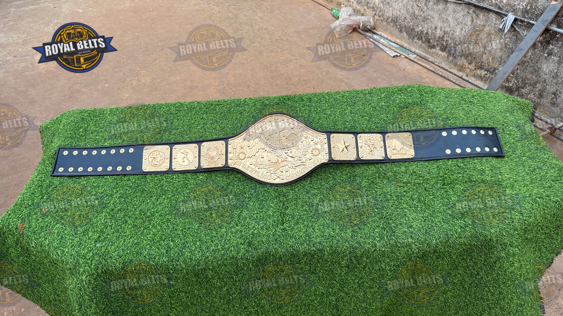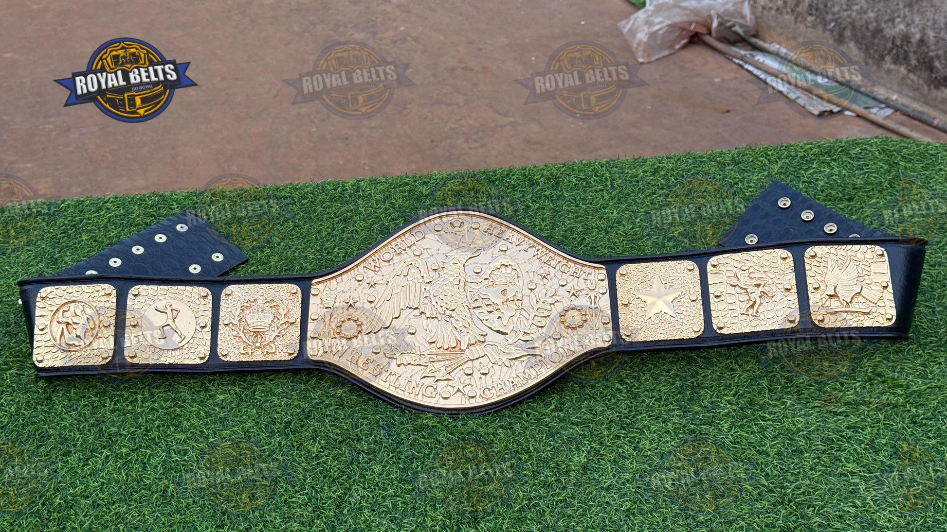 NWF Antonio Inoki World Heavyweight Wrestling Champion Belt. Moreover, this iconic NWF World Heavyweight Championship Belt features bold plates and a durable strap for display or wear. As a result, collectors and fans treasure this Antonio Inoki Championship Title Belt for its authentic design. In addition, the NWF wrestling champion belt replica highlights every detail of the legendary NWF legacy. Therefore, this world heavyweight wrestling championship belt makes a perfect gift for fans and collectors alike.