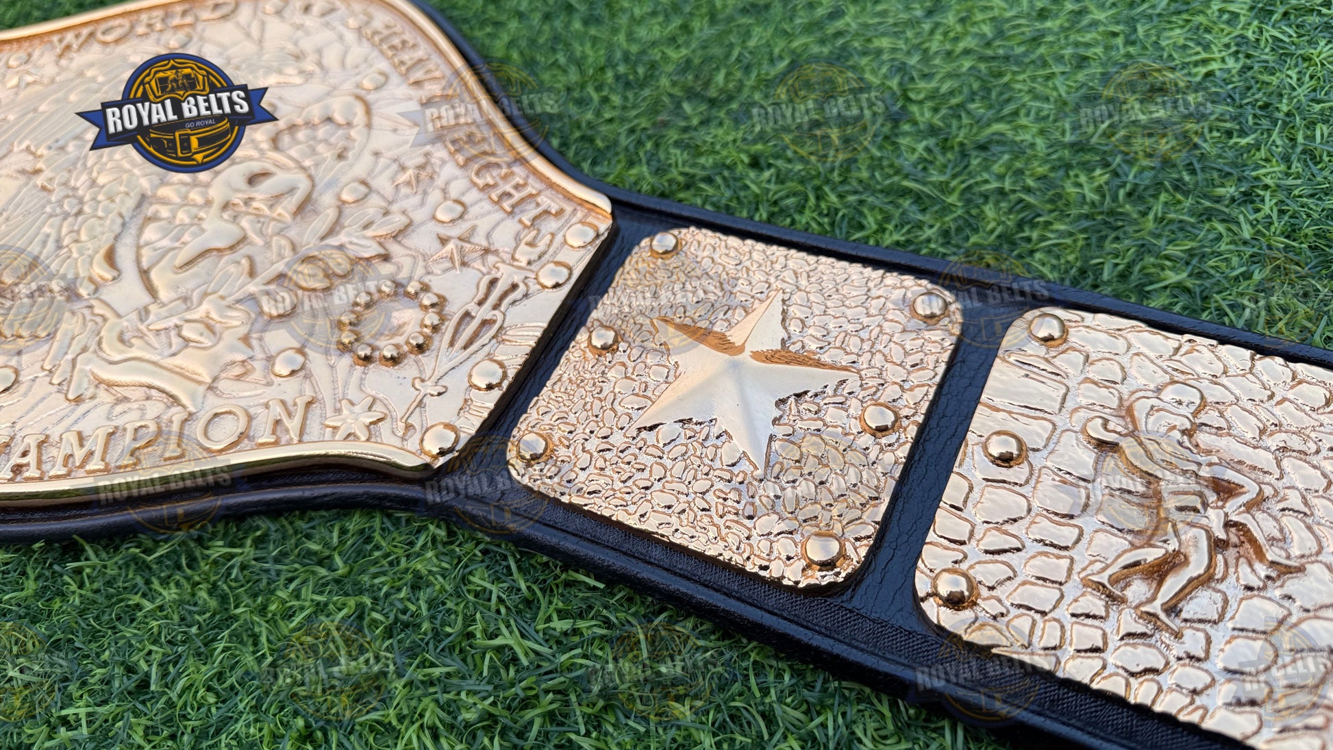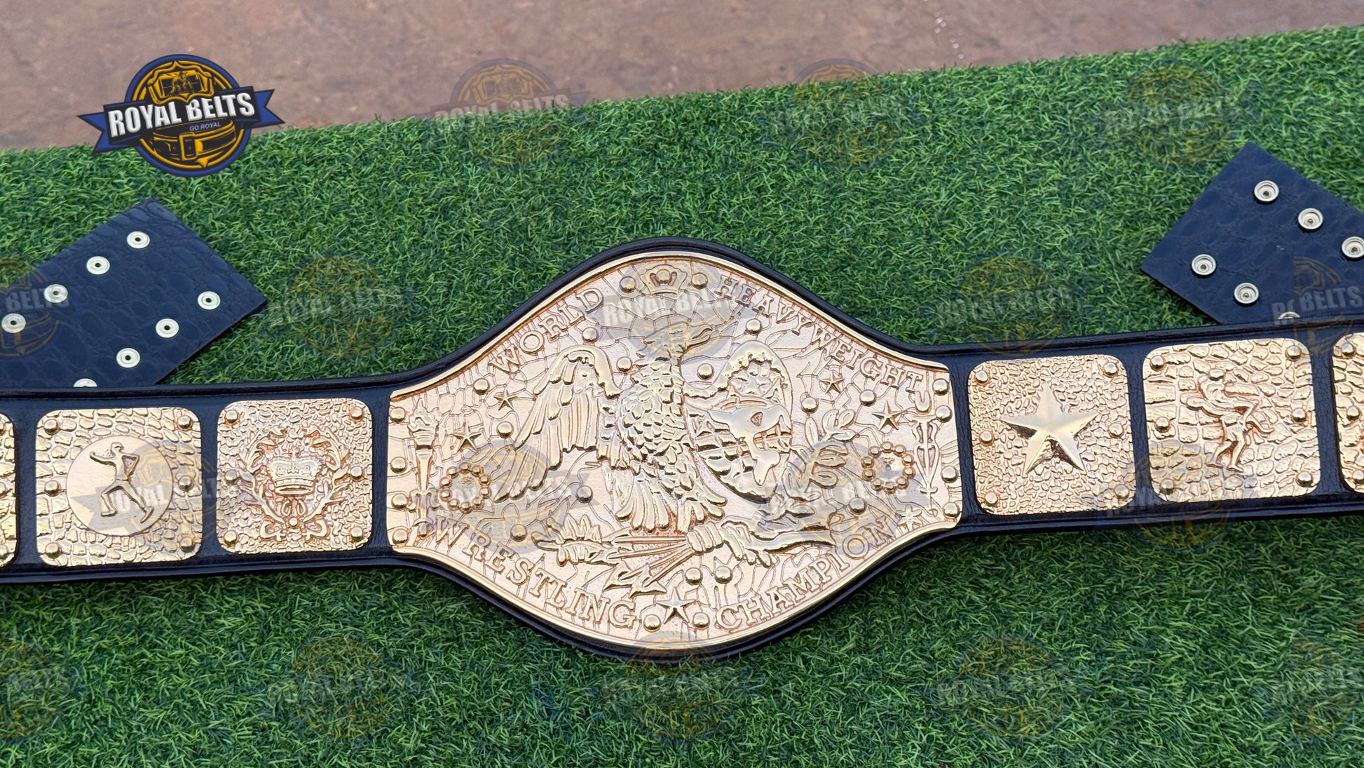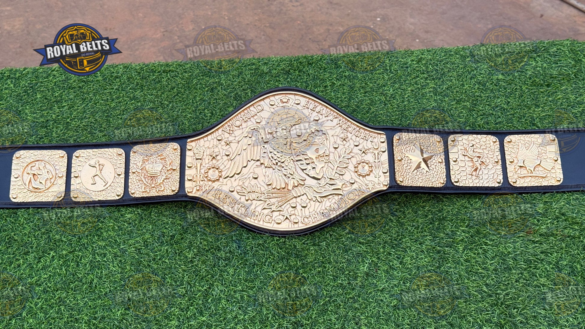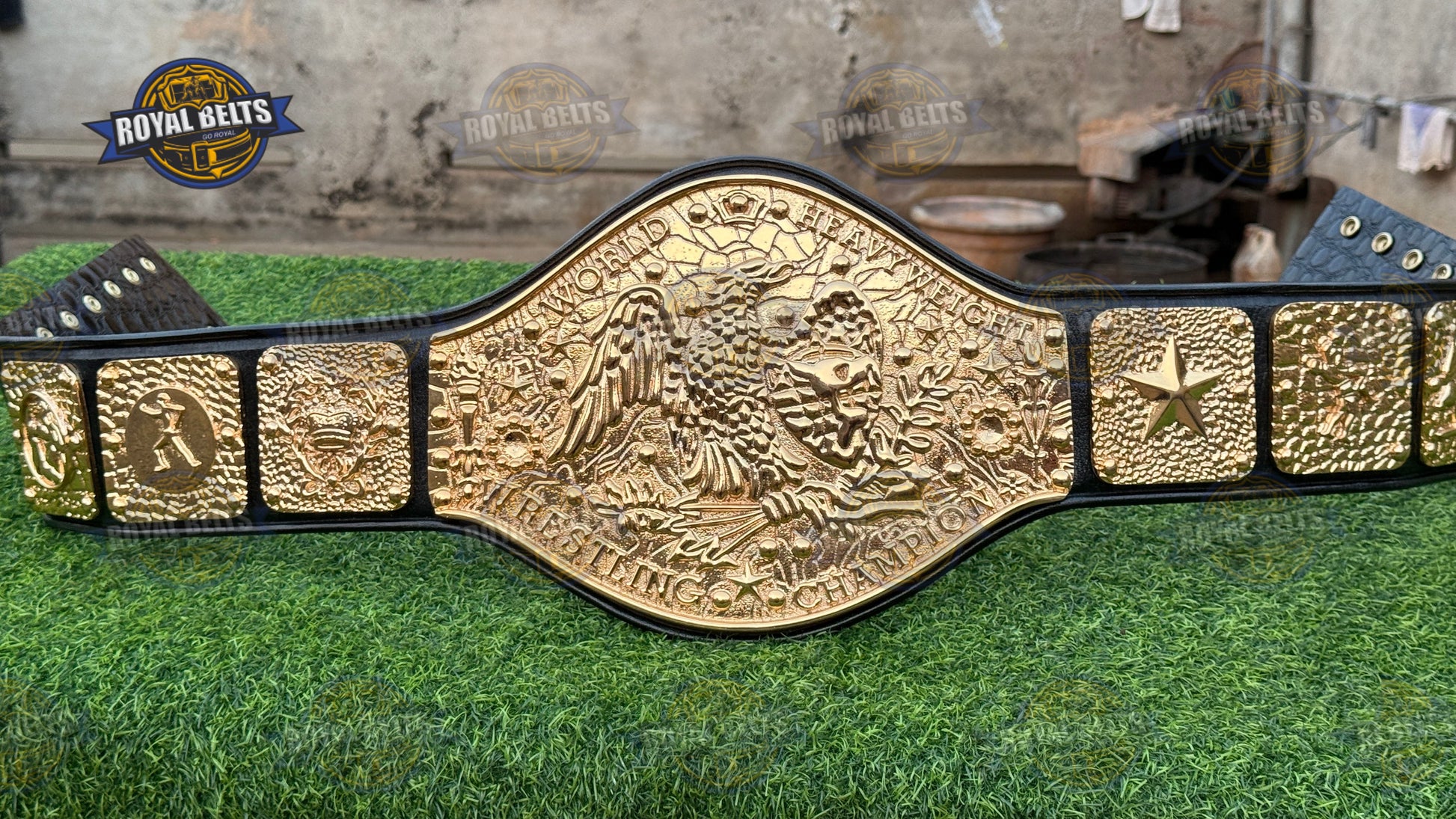 NWF Antonio Inoki World Heavyweight Wrestling Champion Belt. Moreover, this iconic NWF World Heavyweight Championship Belt features bold plates and a durable strap for display or wear. As a result, collectors and fans treasure this Antonio Inoki Championship Title Belt for its authentic design. In addition, the NWF wrestling champion belt replica highlights every detail of the legendary NWF legacy. Therefore, this world heavyweight wrestling championship belt makes a perfect gift for fans and collectors alike.
