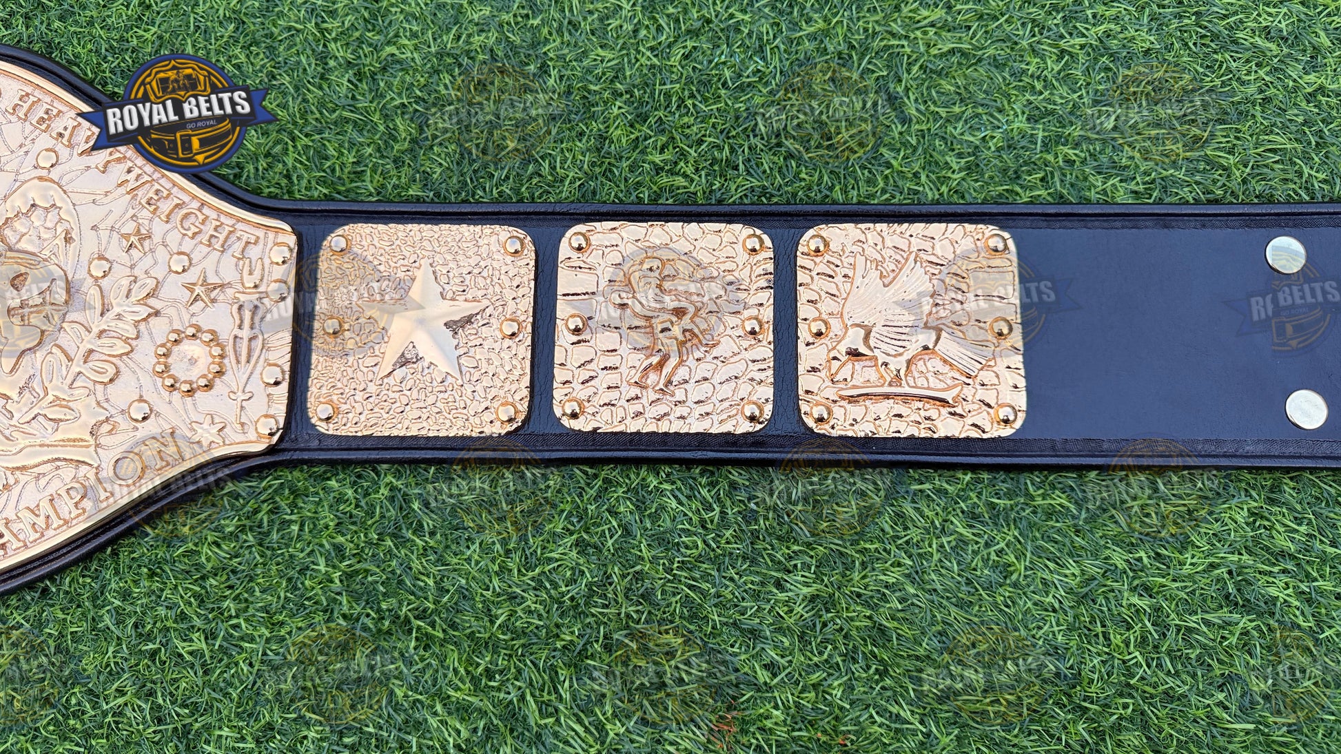 Our skilled craftsmen made this Championship Title Belt using premium materials and careful attention to details, make sure it honors the legacy it represents. Moreover, we craft this title belt in 8mm Zinc with hand tooled leather and sealed edges, featuring Dye Casting Quality.