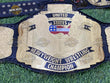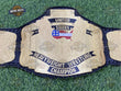 Furthermore, detailing sharpens borders and text, and meanwhile keeps the old school look. Also, craftsmen use hand tooled leather, and consequently finish sealed edges for long use. Hence, collectors choose this WCW wrestling belt, and finally trust Royal Belts for quality championship belts.